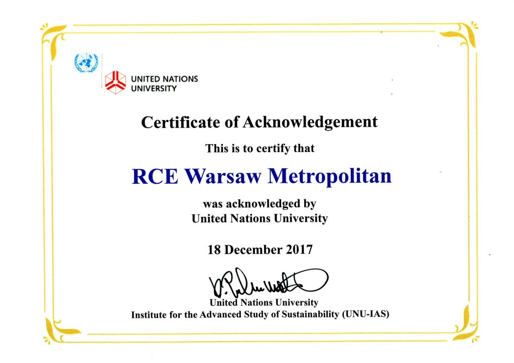 Dzięki staraniom Uniwersyteckiego Centrum Badań nad Środowiskiem i Zrównoważonym Rozwojem powstało RCE Warsaw Metropolitan należące do sieci Regionalnych Centrów Ekspertyz Edukacyjnych dla Zrównoważonego Rozwoju (ang. Regional Centre of Expertise...