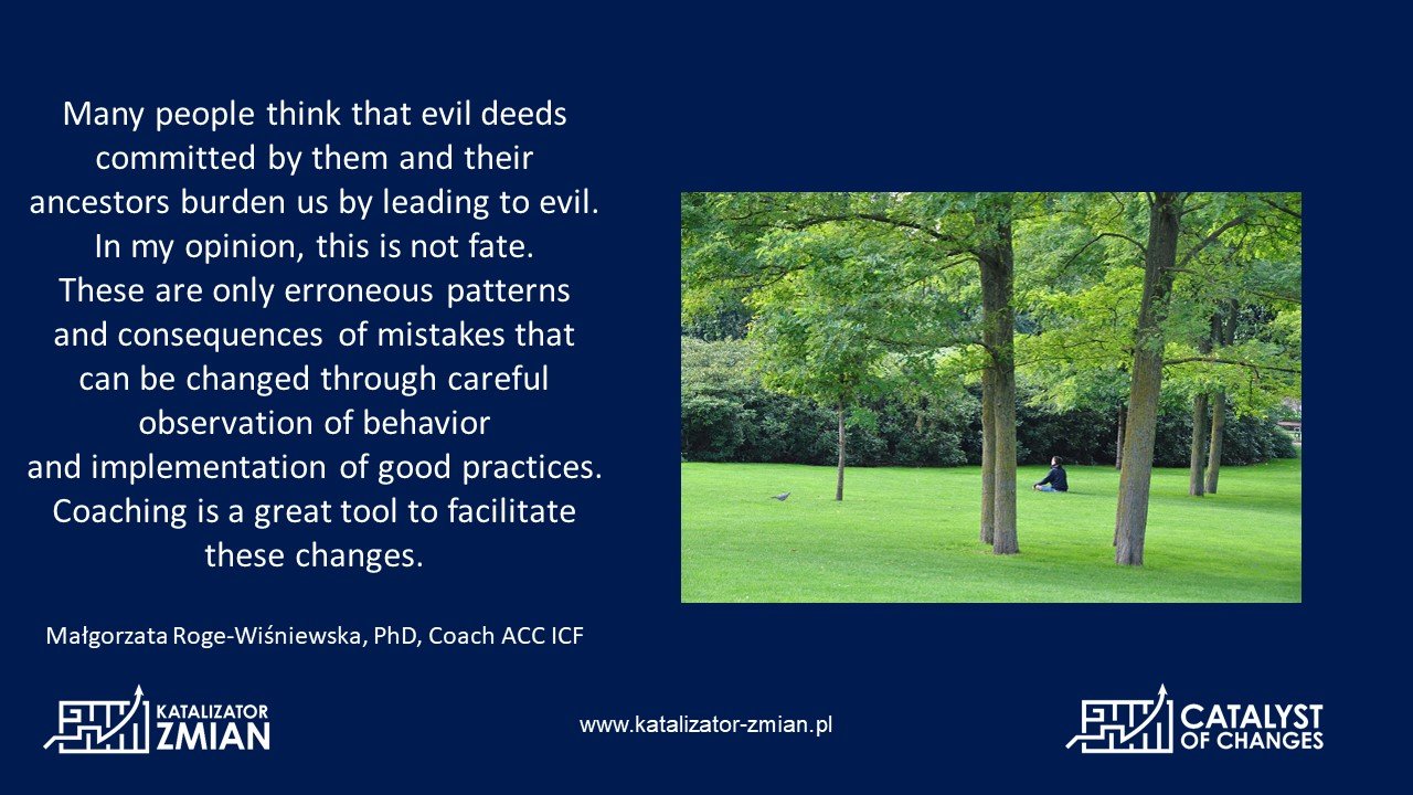 Wielu ludzi uważa, że złe czyny dokonane przez nich oraz ich przodków obciążają prowadząc do złego. Moim zdaniem nie jest to żadne fatum, tylko błędne wzorce i skutki błędów,...